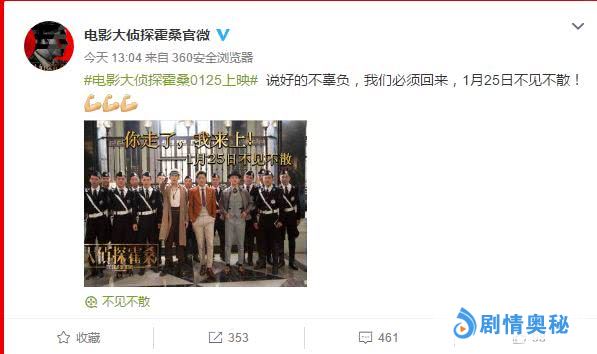 没错,昨晚刚宣布撤档的《大侦探霍桑》又双叒回归原档期1月25日。与此同时,宣传物料上写着,“你走了,我来上!”,疑似直怼电影《情圣2》。