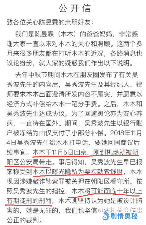 陈昱霖在曝光吴秀波之后一直在国外,但是在向吴秀波索要所谓的”分手费“时,曾向国内的律师咨询,但是律师给建议陈昱霖并没有听,孤身回国之后就被捕,如果不是其父母用她 的微博曝光,相信很多人以为这件事就这样过去了。