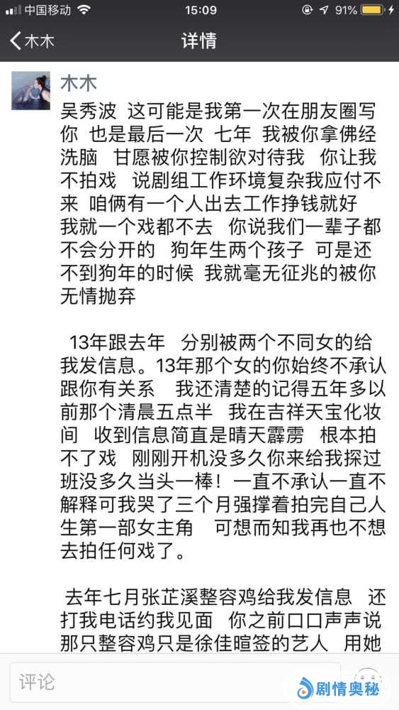 陈昱霖在9月24日在朋友圈曝光吴秀波出轨七年,并且还牵扯到张芷溪,张芷溪也是提醒大家谨慎吃瓜,并且声明那位”老师“多次骚扰她,现在大家知道那老师是谁了吧?