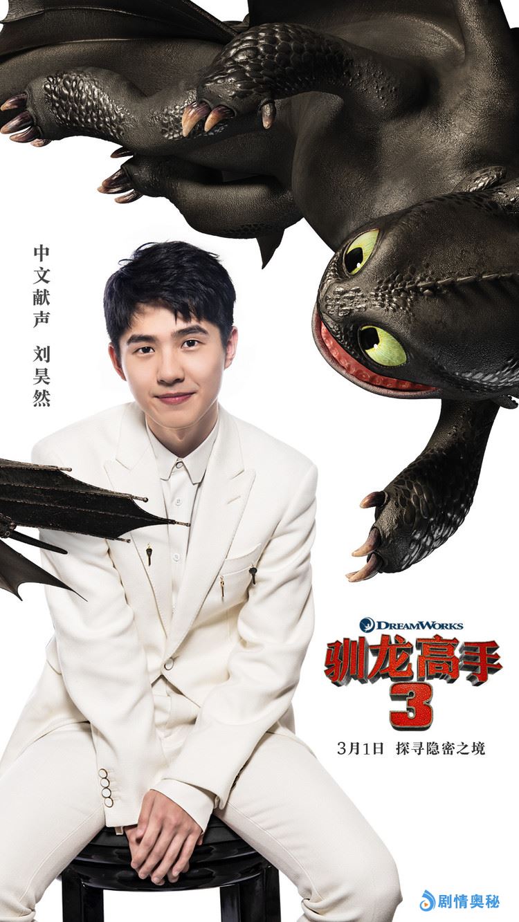 梦工厂的经典动画电影《驯龙高手3》昨日宣布中国定档3月1日,这让广大“龙粉”兴奋不已。今日,影片又宣布了一则重磅消息:刘昊然将为中文版影片的主角“小嗝嗝”配音!