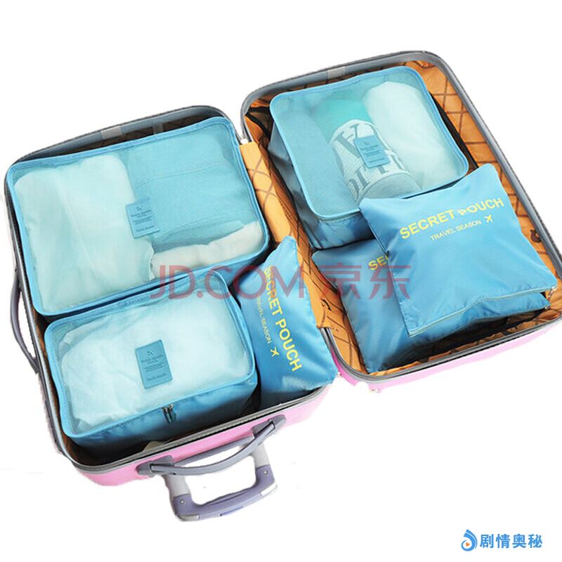 马洛里 旅行收纳袋行李整理包 旅游衣物收纳整理袋 内衣收纳包 洗漱包6件套 蓝色