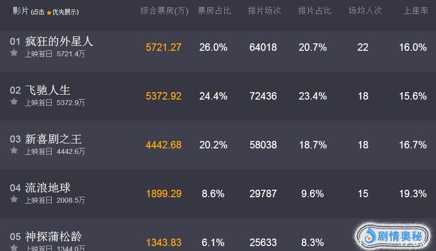 《疯狂的外星人》凭借着5700多万的预售票房成功力压其他所有电影登顶夺得目前的预售票房冠军,说起来这部电影之前也仅仅只是预售票房第二,后来凭借着口碑一步步反超《飞驰人生》。