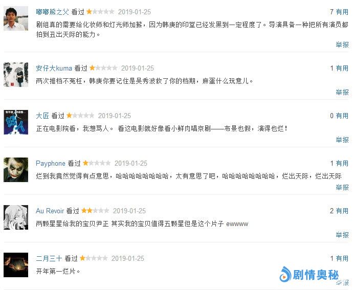 韩庚新年第一部作品就差评如潮,只能说他又拍了一部烂片。是的,这两年,虽说韩庚的人气有所回升,可是,他独挑大梁的电影没有一部是好作品。从2018年到现在,算上《大侦探霍桑》这部作品,韩庚主演了三部超级烂片了。这样的韩庚,不是烂片王,还能是什么呢?