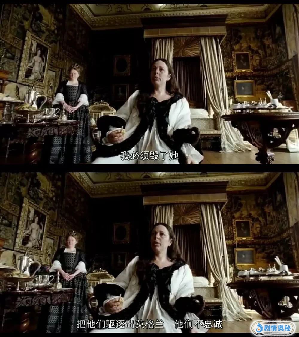同时阿比盖尔联手托利党成员哈利,利用女王对萨拉的由爱生恨,一举将萨拉从女王的卧室和朝堂之上赶了出去