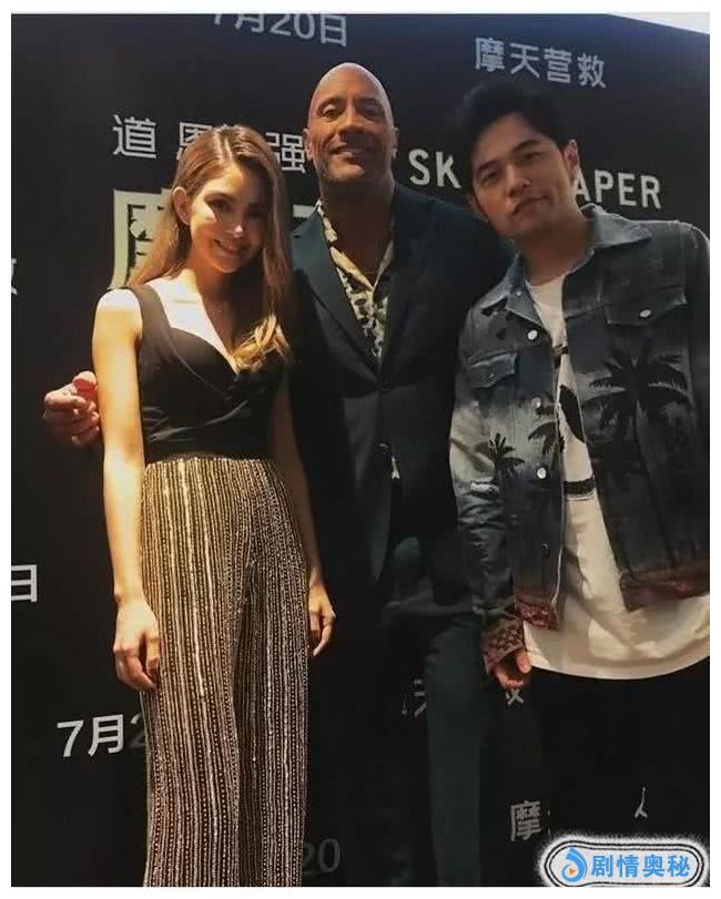 昆凌在《摩天营救》中的反派表演让人见识到了天王嫂也有演坏女人的一面,这部剧的男主是巨石强森,这小俩口都很喜欢他,亲密合影时很开心地让巨石强森站在C位。