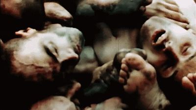 1945年,二战结束,美军解放集中营时,拍摄了以下的画面: