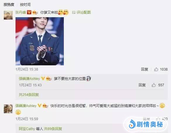 难为他和老爹张丹峰还积极地在《以团之名》的微博下面应援。