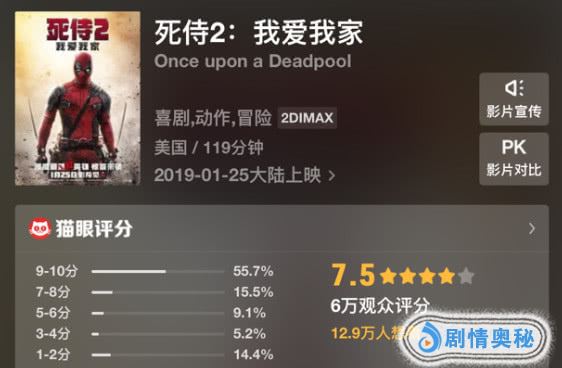 根据猫眼专业版显示,在上映的第一天,《死侍2》的评论页面中出现了连续多页的一星评价,评论多数不友好。从猫眼对观众好评度的统计数据可以看到,《死侍2》的“1-2分”区间占比竟然高达14.4%,有点夸张了,这是情况非常少见的。