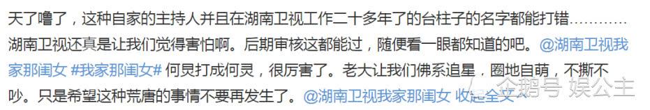 重点是何老师可是湖南卫视的元老级主持,连他的名字都给打错了,而且节目组没有道歉,导致很多何老师的粉丝不满了,纷纷开始吐槽节目组不走心也就算了,还不道歉!心疼何老师!