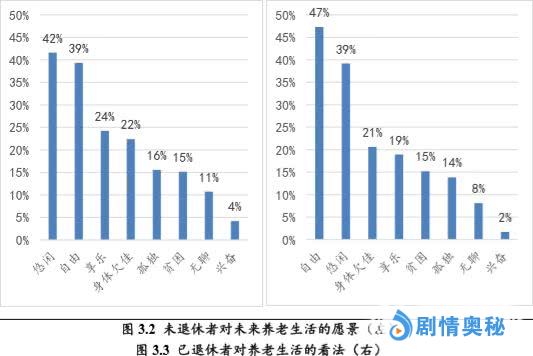 在收集到的关键词中,“悠闲”、“自由”、“享乐”几乎是大家对老年生活的共同愿景。