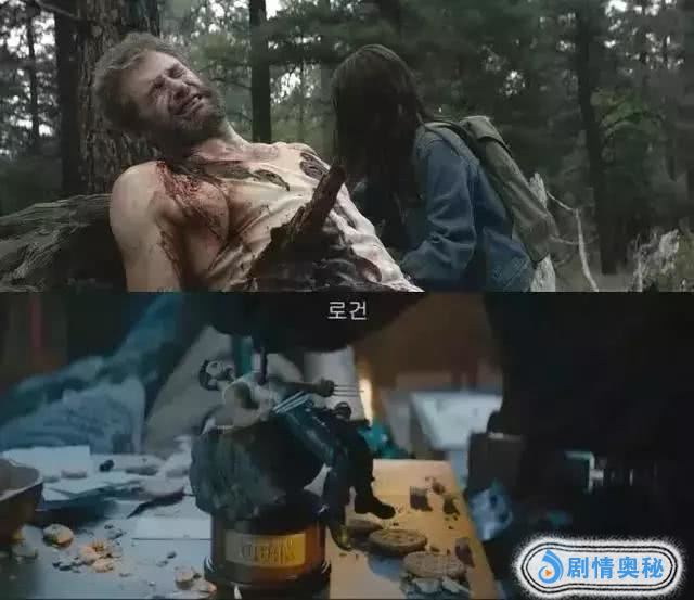 影片一开始我们不走寻常路的小贱贱就用汽油桶子把自己炸了个满天飞,第一个彩蛋出现:就你金刚狼会死,我也会!而且《金刚狼3:殊死一战》最后死去的造型被死侍做成了音乐盒,摁一下小树枝,金刚狼再为你死一次!