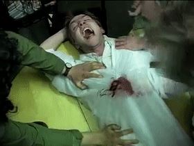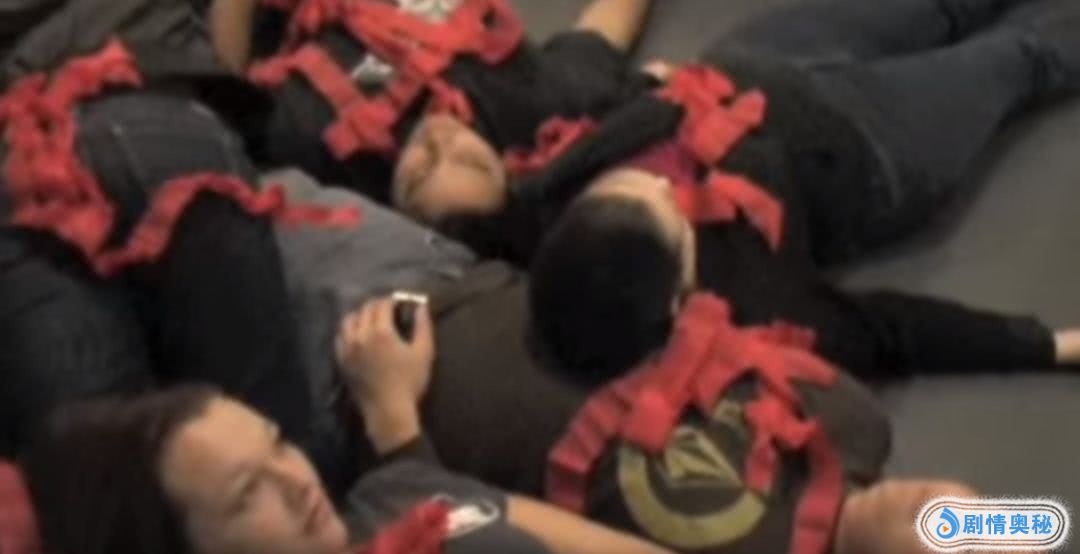 上面这位还算良心,拿的番茄酱当道具血。