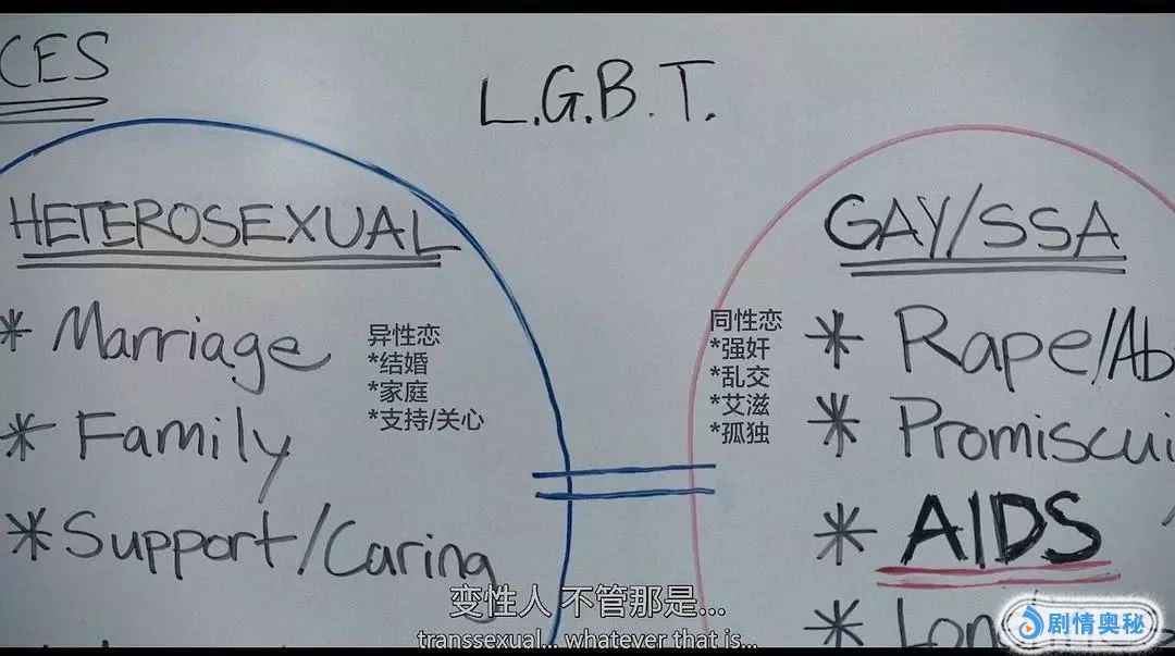 (在治疗中心,同性恋和艾滋、乱交、强奸划等号)