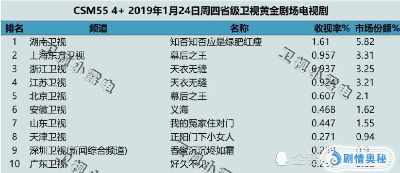 周冬雨,罗晋的新剧《幕后之王》收视率也很不错,播出后一直名列前茅,有实力巨星压阵收视率就是有保障。追剧是很辛苦的事情,要是同时追多部剧那么真是要半条“老命”,好剧扎堆真的是幸福的烦恼,热播中的大剧你最喜欢哪部呢?《天衣无缝》2台收视率合计1.86%力压《知否》1.61%,秦俊杰打败赵丽颖,你怎么看?欢迎讨论!