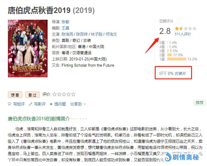 纵观多年来,导演王晶的确是一位高产的导演之一,但是由于高产,难免在影片质量上令人担忧。如今事实胜于雄辩,这部《唐伯虎点秋香2019》再次刷新了影迷的三观,再一次让我们见证了导演王晶的实力。而除了导演王晶本色执导意外,影片中陈浩民、林子聪、陈百祥等人依旧贡献出了灾难级别的演技,分分钟出戏,女主小石榴和华秋虽然颜值在线,但是相比巩俐的秋香,气质完全不在一个调上,演技更是没得说,差到掉渣。