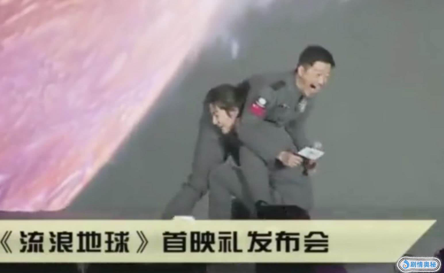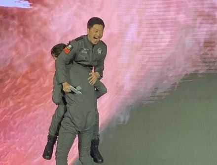 当主持人让二人同台,即兴表演父子重逢的场景时,“儿子”屈楚萧将话筒递给主持人,趁吴京不注意,从后面拦腰抱住,一把扛走。屈楚萧起身的时候显得很吃力,二人差点向后摔倒。吴京则全程乐得合不上嘴。