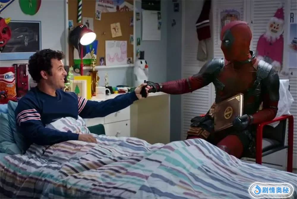 《死侍2:我爱我家》和原版究竟有多少不同?基本的故事结构完好无损,但其中吸引成年人的部分确实被移除了不少,比如大量的血浆,比如原本开头的死侍的自杀部分。《公主新娘》的讲故事模式取而代之,大部分补拍都在摄影棚内搭建的卧室场景里完成,比起《正义联盟》的灾难式补拍,《死侍2:我爱我家》的补拍成本显然并不高,拍摄一部PG13版,从制片层面来说,稳赚不亏。