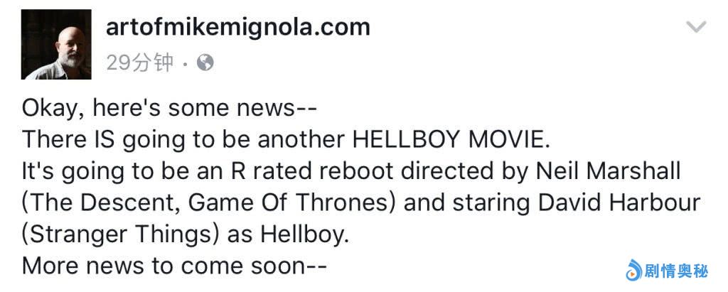 《地狱男爵》的漫画作者在社交平台上坐实了这个消息