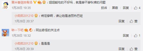 然而有其他爱丽丝指出,其实不看月牙也能知道热巴吃得挺不错的!最明显的就是某人最近的小脸变得圆润了些。看起来很弹性。当然,大家自然不会介意这点小重量。只要爱豆舒舒服服的,一切都好说。虽然不用担心吃的问题,但谈到养生方面,某人穿没穿秋裤的问题就要拿出来重视一下了。因为在这点上,迪同学的积极性可能就没有那么高了。相信爱丽丝们应该深有体会吧。老母亲的心思时刻在线,就看乖崽子听不听话了,哈哈!