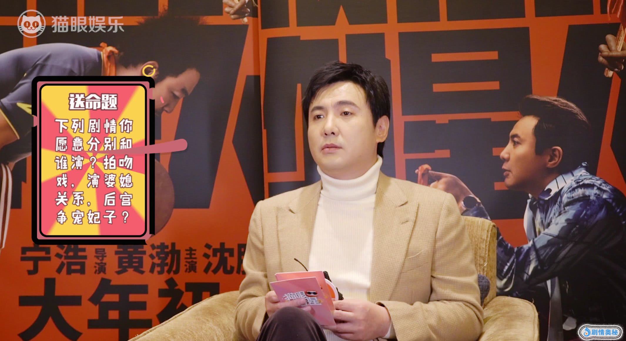 面对在宁浩、黄渤、雷佳音三个人中,分别愿意和谁拍吻戏、演婆媳关系、后宫争宠妃子,沈腾四个字回应:“无法回答”,但非要挑的话,就和雷佳音演吻戏,原因是“好下嘴点”,黄渤只能演婆媳关系,毕竟前阵子和一个青岛大姨撞脸还上了热搜,很符合形象