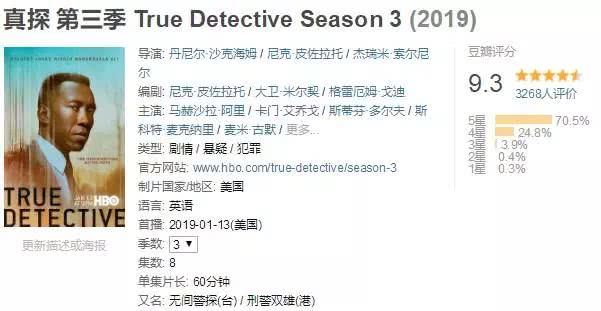 《真探》第三季还剩4集,但随着剧情的展开,已充分展现了这部剧集的魅力,HBO的作品果然值得信赖。