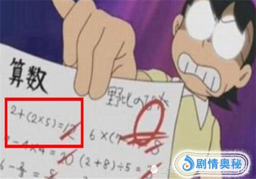 接着我们看第二张试卷,这张试卷是大雄的妈妈拿着的,试卷当中的“0”非常的显眼。当时我们在看这一集的时候,大家所关注的重心就会放在这个0上面。然而当我们再翻出这张试卷看,你会发现大雄的成绩被老师写错了,比如小编就专门用方框将其中一道题给圈了出来,而这道题大雄明显就是做对了,然而老师判他错误,这老师是不是在针对大雄呢?