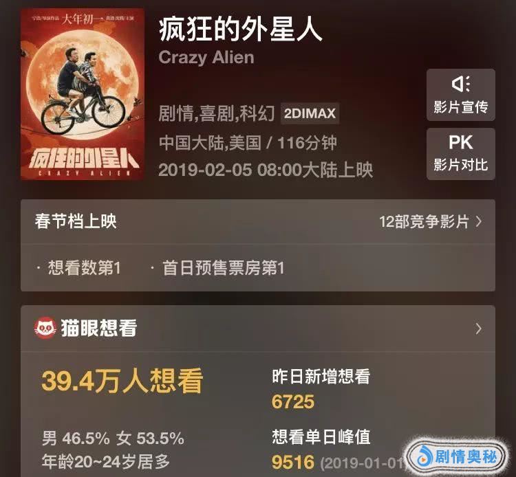 在同期上映的12部竞争影片之中,《疯狂的外星人》牢牢占据头筹。