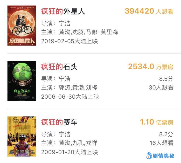 宁浩的“疯狂”系列,自2006年《疯狂的石头》起步,到2009年《疯狂的赛车》票房破亿,终于到了2019年《疯狂的外星人》预售票房即将破亿。