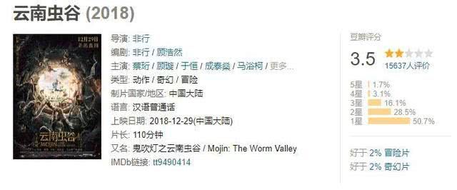 同时,又有去年12月上映的《云南虫谷》这样让人大跌眼镜的圈钱之作.