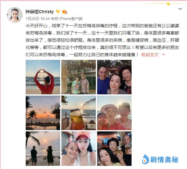 钟丽缇称自己带着爸爸、公公婆婆来岛上排毒
