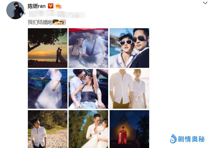 陈燃在社交平台发文道:“我们结婚啦”,配图就是九宫格的结婚照,这组结婚照不太“正经”,看起来很像是旅游时拍的照片,不过陈燃与老公看起来很般配,两人脸上甜甜的笑容隔着屏幕都让人感觉到了幸福感,如今这一对明星情侣刚宣布婚讯不久,大家正忙着祝福另一对就宣布了分手,7年感情还是结束了。