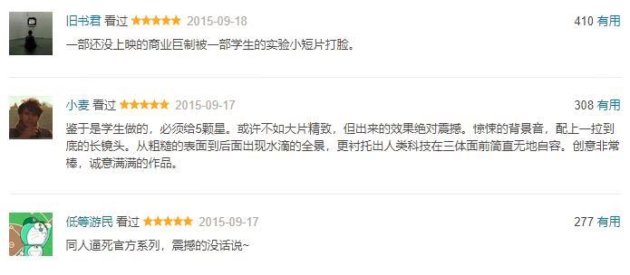 作家刘慈欣看完短片甚至说: