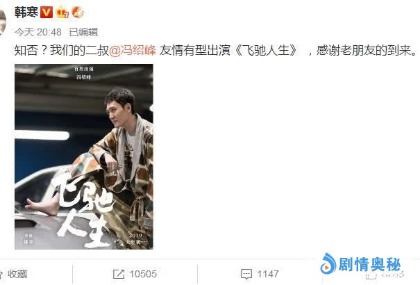 1月30号晚,导演韩寒发文直言“冯绍峰友情有型出演《飞驰人生》”,韩寒尹正之后,又迎来一位男神,阵容越来越强大了。