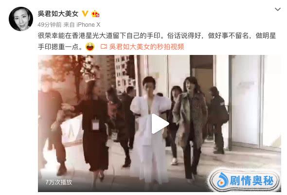 吴君如在重开典礼结束后的采访中谈到:“香港电影最光辉年代有一份参与,今天见到这些手印就好像同学会毕业签纪念册。”她同时也在微博上开玩笑称:“俗话说得好,做好事不留名,做明星手印摁重一点。”