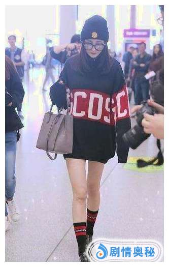 一身绿色运动服,外搭紫色刺绣长款风衣,最特别精心设计的点在用米线长筒毛线袜包住裤腿。这样的造型如果穿的不好,很容易让人觉得赘婿和莫名其妙。但女神就是女神,这身装束穿在杨幂身上那就是时尚靓丽的双重结合,并且还保暖呢。于是,长腿袜包住裤腿的风格不负所望的流行起来了。