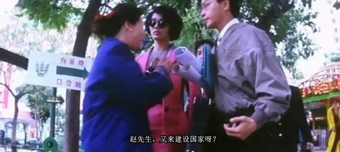 而在赵港生扮演开发商,以此结识廖杰妻子的一幕中,欧嘉慧特意找来大妈作为托儿,跑到他身边说那句搞笑台词,简直可以说是港式无厘头喜剧的精髓。至今仍有好多小伙伴被大妈那句祥林嫂式的对白洗脑。
