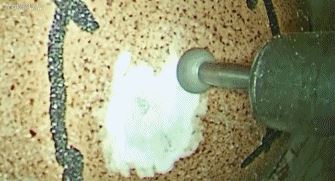 在人头骨模型中央放个鸡蛋,然后通过小孔用电钻磨鸡蛋壳。