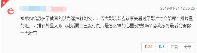 本身春节档就是很多电影挤破脑袋都想进的档期,所以竞争是非常大的,只是被爆出这样的负面消息,观众的反应还是相当激烈的。