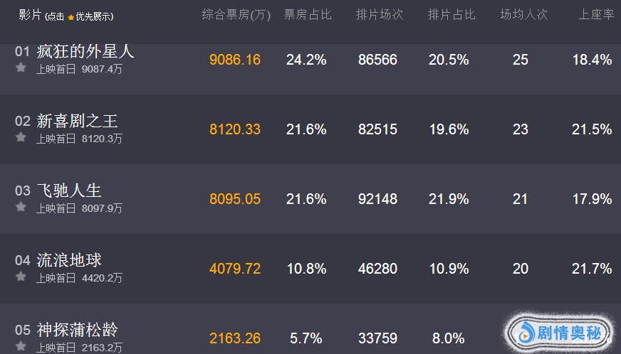 预售票房排在第二的电影却让人有点意外,因为已经变成了《新喜剧之王》,大年初一的预售票房已经超过了8100万。在此之前周星驰的作品《新喜剧之王》预售票房是排在第三的,但是到如今终于是逆袭成功进入了亚军宝座。再加上《新喜剧之王》上座率很高,所以最终逆袭《疯狂的外星人》也是大有可能。