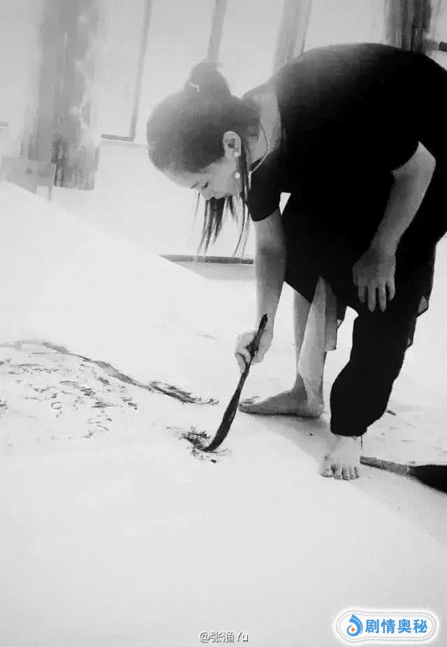 画画的时候她可以很豪放,将巨大的宣纸铺在地板上,光着脚在上边走来走去,然后拿着大笔弄墨。
