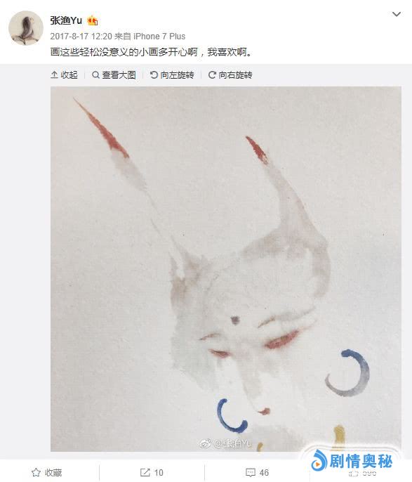 所谓画如其人,如果你顺着时间线将张渔的微博翻至最后一页,越往后,张渔的眉眼也似她画中的人物一般,越发灵气逼人。