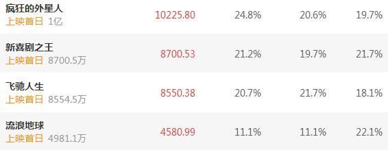 除此之外吴京主演的《流浪地球》同样口碑炸裂,但由于该片排片相当不利,目前只有11.1%的排片,预售成绩自然不高只有近5000万,只有《疯狂的外星人》的一半,有点无奈。