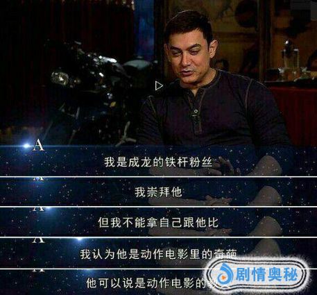 阿米尔·汗曾在节目中坦言,自己是成龙的“铁杆粉丝”,还夸赞成龙是“动作电影的教父”。