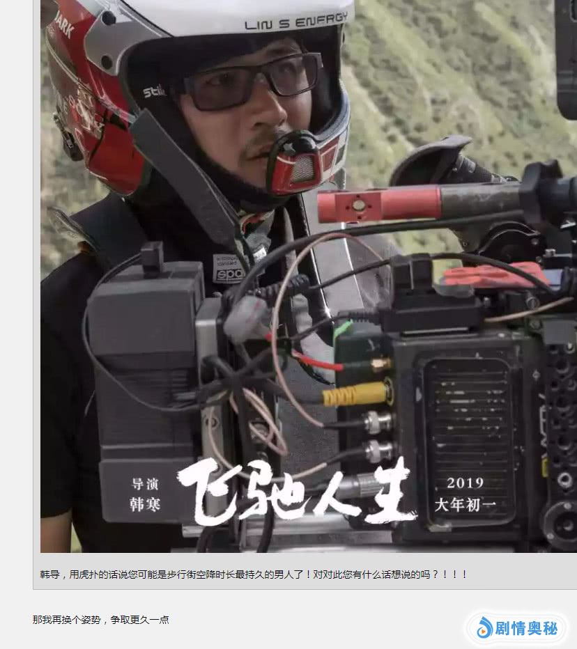 对此韩寒表示:拍赛车题材很难,尤其是这种拉力赛,还是在高海拔,电影中的决战,我们拍了两个月,超期了很久,导致后面的文戏和制作都很紧,留下了很多遗憾,但我相信带来一段不错的赛车戏,放在任何地方都不丢人。以后不拍车了,下部片子想拍机甲。