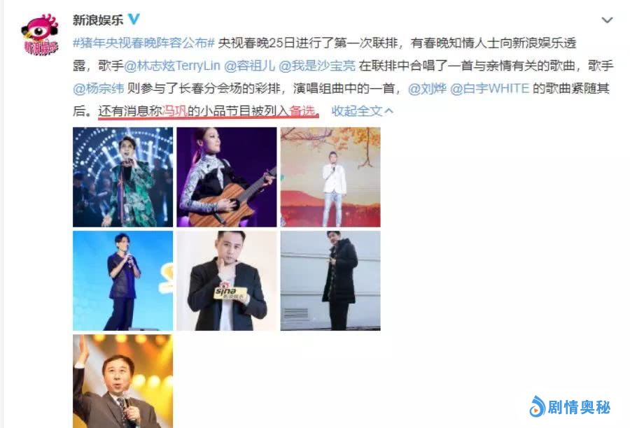 尽管今年语言类节目阵容强大,但美中不足的却是缺少冯巩老师的身影!此前曾有媒体报道,冯巩老师的小品被列入备选节目,看来今年是听不到那一句“我想死你们了”。
