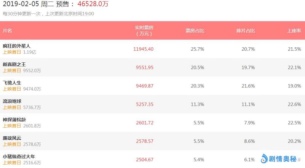 《新喜剧之王》大年初一首日排片量占比19.7%,这与片方预期超过30%排片量相差甚远,从这也可以看出院线不迷信周星驰了。目前实时预售票房9552万(截止19点),排名第二,成功反超了《飞驰人生》预售9474万,不过还落后《疯狂的外星人》1.19亿预售。老实说在少了527个厅不给排片的情况下还能完成逆袭,周星驰的号召力确实太厉害了,华语影坛第一人实至名归。
