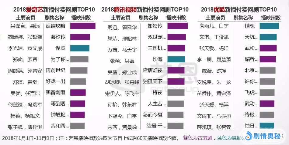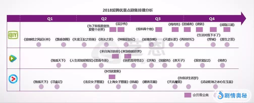 2018年,爱腾优等视频平台迎合用户观看习惯的改变,在剧集题材和内容长度上调控,将不同剧集内容根据播放模式、圈层覆盖、剧集体量、题材类型等因素进行差异化排播,排列组合打出“组合拳”,使得多元化内容发挥其最大效能。