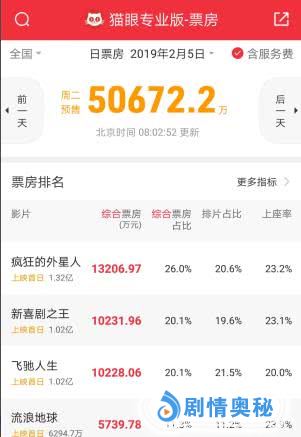 但同样由于上映影片数量太多,今年春节档冠军影片无论是《疯狂的外星人》《新喜剧之王》,还是《飞驰人生》或《流浪地球》,票房都难超越《红海行动》。经过如此竞争惨烈的一个春节档,或许明年春节大年初一上映的新片数量会有所减少,回归相对理性的竞争。