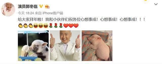郭冬临也是在自己的个人主页上再次更新了消息。这次他的更新就很有趣了。他总共发了三张照片。有两张是小猪的图片。有一张是他的照片。他把自己的照片放在了两张小猪的照片的中间。让人看了以后也是觉得颇为想笑。