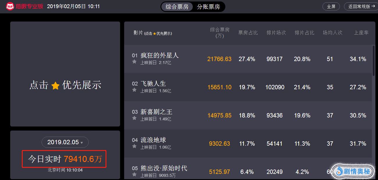 随着跨年夜的钟声响起后,我们一同步入了新的一年里,而定档于2月5日上映的8部影片也随即展开了热映,从猫眼专业版实时票房数据显示,截止发文时间,贺岁档8部影片上映10小时内,累计总票房已经突破7.9亿,影片《疯狂的外星人》占据大头,以上映9小时票房破2亿的趋势登顶了贺岁档票房榜首,随后《飞驰人生》、《新喜剧之王》和《流浪地球》同样以破亿的好成绩位居贺岁档票房榜单第二、第三和第四位置。下面我们就来简单分析下,在大片云集的贺岁档中,到底哪一部值得一看。